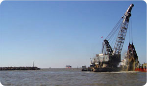 营口港口门改造工程,是营口港为了满足大型船舶进出港口航行安全需要进行的一项改造工程。营口港务集团委托港一疏浚工程有限公司承担工程任务,历经两年时间,该工程已竣工。原口门宽度为325m,2006年拆除原西防波堤及堤头105.0m(包括扭工字块、堤心石及堤头灯),拓宽航道南侧宽度并进行挖泥,累计口门宽度430m;2007年完成航道北侧拓宽段挖泥疏浚任务,至此确保满足港口生产安全需要,为营口港鲅鱼圈港区作出巨大的贡献。顺利竣工,保证北围堰堤心石回填安全竣工。
